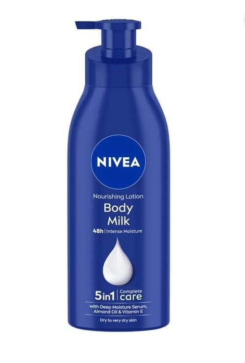 Nivea Body Milk Nourishing Lotion deeply hydrates dry to very dry skin, providing up to 48–72 hours of moisture with a non-greasy, fast-absorbing formula.